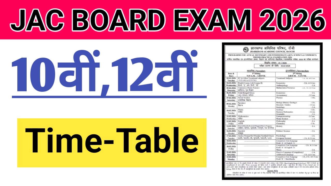 JAC Board Exam 2026 का फाइनल रूटीन जारी! 10वीं–12वीं के छात्रों के लिए बड़ा अपडेट, अभी देखें पूरा टाइम टेबल
